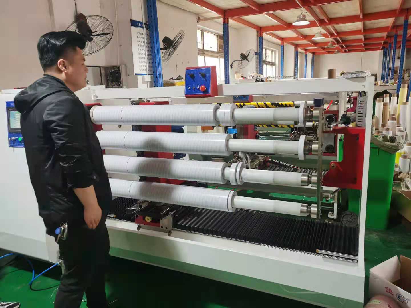 6. 本機(jī)采用雙刀四軸切割生產(chǎn),增加工作效率,更適合小卷徑大批量切割生產(chǎn)。